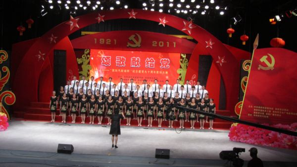 為慶祝中國共產(chǎn)黨建黨90周年,歌頌黨的正確領導,贊美祖國社會主義建設的偉大成就,5月13日下午,我公司華詩雅蒂合唱隊在阜陽電視臺演播大廳與來自阜陽市直黨政機關(guān)企事業(yè)單位、經(jīng)技技術(shù)開發(fā)區(qū)及三區(qū)(潁州、潁泉、潁東)的32支代表隊同臺競技,展開角逐。
