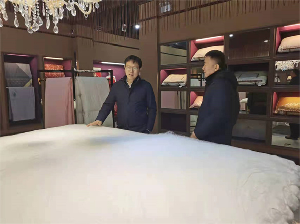 12月31日上午,阜陽市副市長鄭久坤蒞臨京九絲綢股份公司調(diào)研指導(dǎo)。中國絲綢協(xié)會副會長、公司董事長馬品德全程陪同調(diào)研并介紹公司生產(chǎn)經(jīng)營情況。