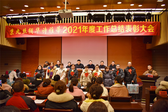 瑞雪兆豐年,虎年迎春到。1月28日下午,京九絲綢·華詩雅蒂2021年度工作總結(jié)表彰大會在華夏絲綢博物館二樓會議室隆重召開。會議由公司副總經(jīng)理汪曉飛主持,公司班組長及以上管理人員、機關(guān)科室人員、全體受表彰人員近200人參加了會議。公司董事長馬品德出席會議并作了重要講話。