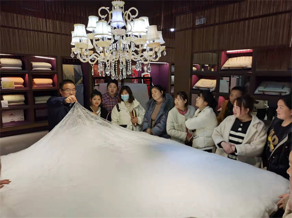 周總指出公司長期以來一直注重人才隊伍建設(shè)、注重“新鮮血液”的輸入,公司提出了“人皆是才、人盡其才”的人才觀,踐行了“所有成本都可以降,唯獨員工的工資和福利不能降”的企業(yè)價值觀。他闡明了公司目前所從事的繭絲綢行業(yè)是阜陽市重點發(fā)展的十大特色產(chǎn)業(yè)之一,要求大家樹立行業(yè)自信。他向新員工介紹了公司目前全產(chǎn)業(yè)鏈發(fā)展的情況,要求大家牢固樹立崗位質(zhì)量意識、品牌攻堅意識,努力學好本領(lǐng),練好技能,為公司長期可持續(xù)發(fā)展打下堅實基礎(chǔ)。他最后鼓勵大家多向老員工學習,盡快轉(zhuǎn)換角色;審視自身、找準定位;肩負責任、勇?lián)姑;著力實現(xiàn)企業(yè)提供平臺,個人創(chuàng)造效益,大家共同成長的大好局面。