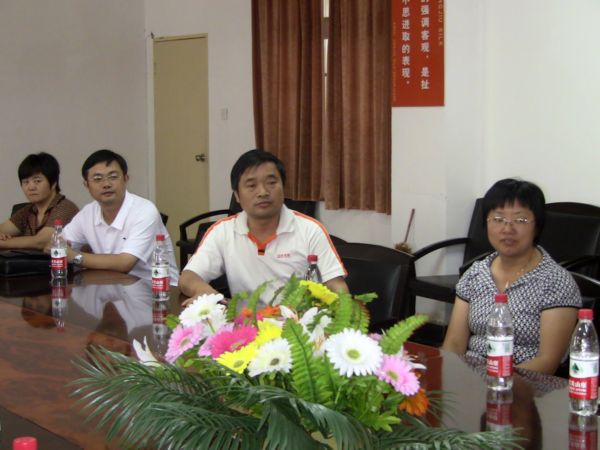 公司副經(jīng)理劉躍華、工會主席兼辦公室主任葛炯、公司董事會秘書韋洪、成品市場部副經(jīng)理周炎等領(lǐng)導(dǎo)在二樓會議室舉行了熱情的接待儀式。首先,劉躍華副經(jīng)理在會上發(fā)表了熱情洋溢的講話,他說:歡迎生命科學(xué)院的領(lǐng)導(dǎo)和學(xué)生來公司開展暑期“三下鄉(xiāng)”社會實踐活動,公司將全力配合貴校各項活動的開展,我公司是一家集栽桑、養(yǎng)蠶、蠶繭收烘、繅絲、織綢、家飾家紡、真絲服裝生產(chǎn)、銷售為一體的綜合性繭絲綢企業(yè),已成為行業(yè)中的龍頭企業(yè),有足夠的條件為蠶學(xué)專業(yè)的學(xué)生提供一個非常良好的社會實踐環(huán)境。公司部分領(lǐng)導(dǎo)也是來自安徽農(nóng)業(yè)大學(xué),非常感謝安農(nóng)為我公司以及絲綢行業(yè)培養(yǎng)這么多的優(yōu)秀人才!