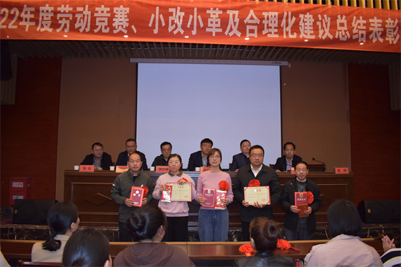 隨后,公司副總經(jīng)理李開典在講話中指出,開展小改小革及合理化建議活動是一項非常有意義的舉措,不僅能夠提高公司的生產(chǎn)效率和品質(zhì),還能夠促進員工的創(chuàng)新能力和團隊合作精神的提升。在活動開展期間,共收到53篇合理化建議和小改小革論文,內(nèi)容涉及多個方面,包括生產(chǎn)技術革新、企業(yè)人力資源管理、企業(yè)形象提升、品牌運營等方面。接下來,副總經(jīng)理劉躍華宣讀了《關于表彰2022年度勞動競賽操作能手、優(yōu)勝班組、優(yōu)秀學員和突出進步員工的決定》的文件?壗z車間許娟娟、劍桿車間劉梅代表獲獎的操作能手分別作了精彩的發(fā)言。公司經(jīng)理班子成員為獲獎的先進集體和個人頒發(fā)獎品,并合影留念。