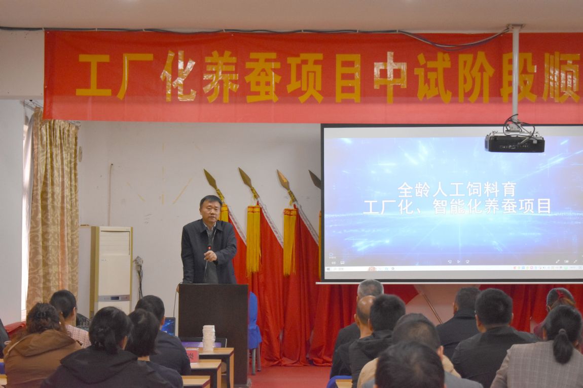 接下來,汪曉飛副總經(jīng)理對工廠化養(yǎng)蠶項目中試階段的整體情況進行了全面回顧。他強調(diào),自項目啟動以來,全體參與人員克服重重困難,積極探索創(chuàng)新,不僅成功實現(xiàn)了養(yǎng)蠶環(huán)境的精準控制,還大幅提高了蠶繭的產(chǎn)量與質(zhì)量,為公司下一階段進行規(guī);懂a(chǎn)打下了堅實的基礎(chǔ)。