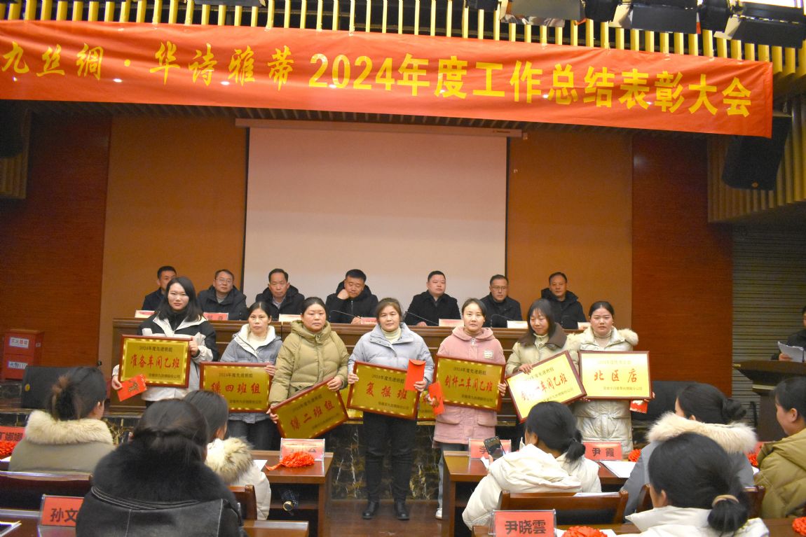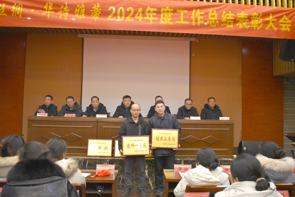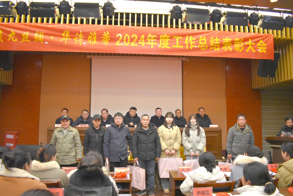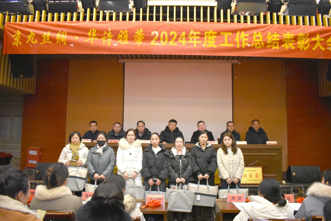 1月24日下午,京九絲綢·華詩雅蒂2024年度工作總結(jié)表彰大會在華夏絲綢博物館二樓會議室隆重召開。會議由常務(wù)副總經(jīng)理葛炯主持,公司班組長及以上管理人員、機關(guān)科室人員、全體受表彰人員參加了會議。公司董事長馬品德出席會議并作了重要講話。