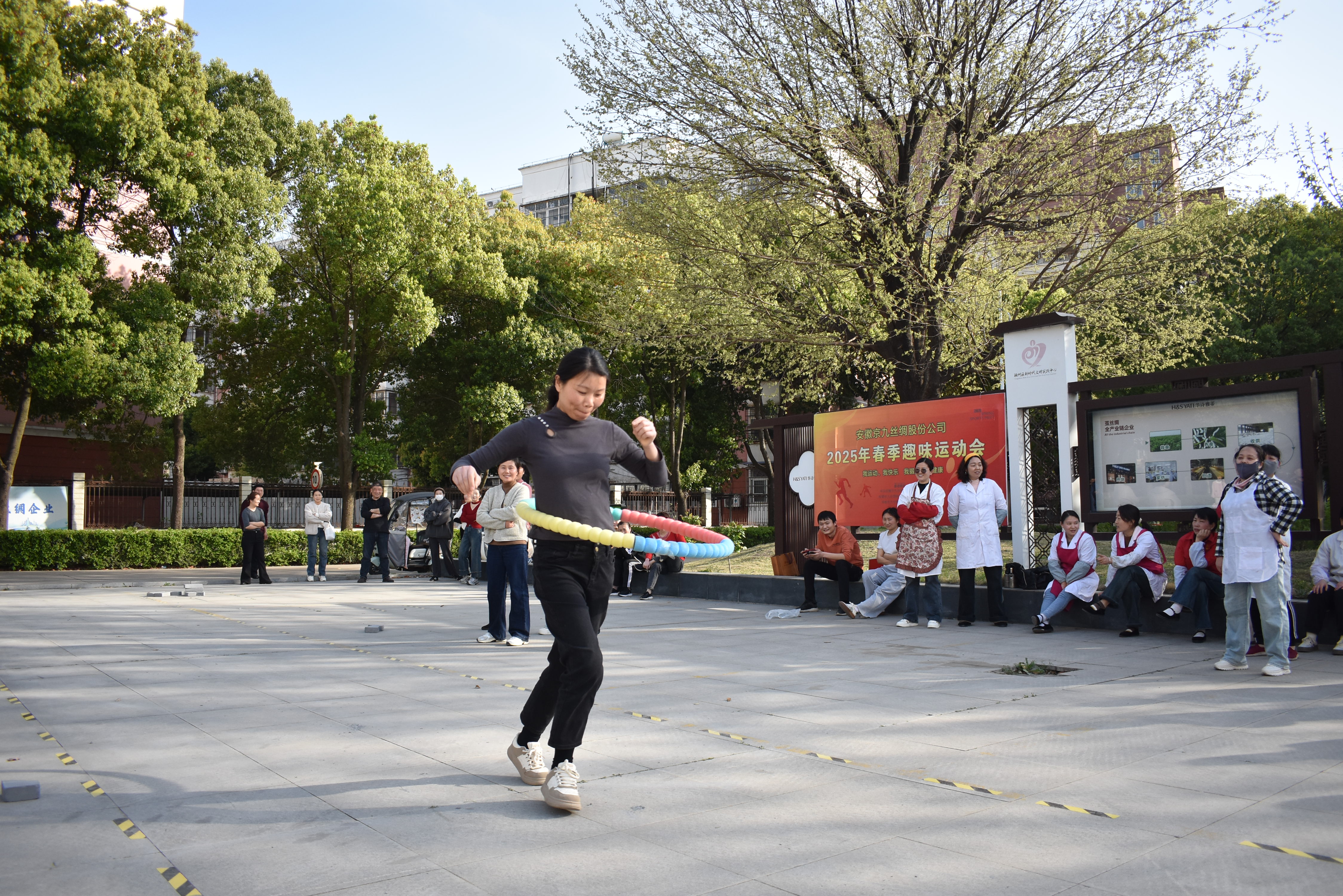 轉(zhuǎn)呼啦圈賽跑50項(xiàng)目中,選手們在賽道上靈活轉(zhuǎn)動呼啦圈,保持平衡的同時(shí)加速沖刺?壗z二車間儲曼利以穩(wěn)定的節(jié)奏感率先沖線,摘得桂冠;復(fù)整車間趙金能、繅絲四車間張曼曼分獲亞、季軍。