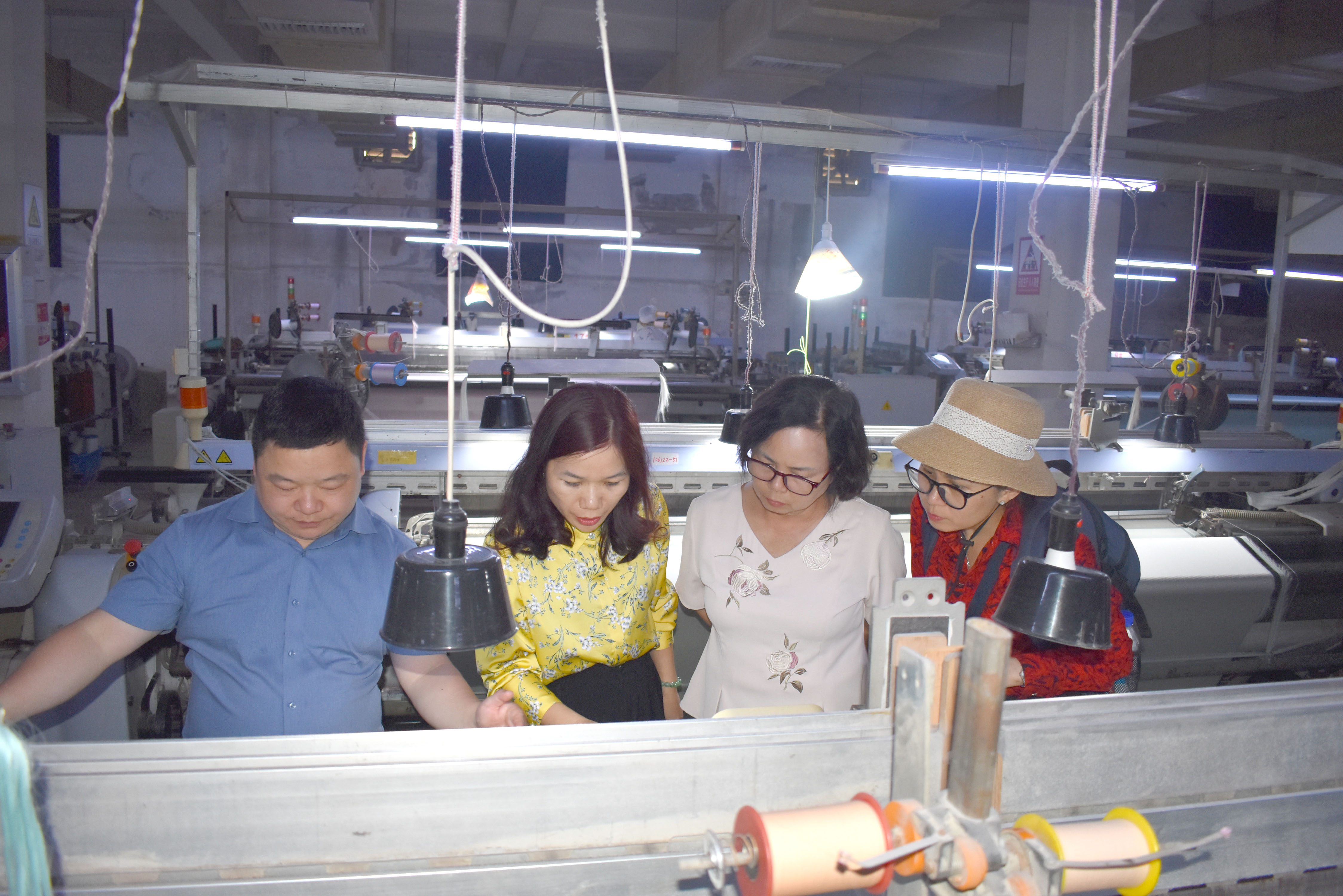 代表團實地參觀了選繭、繅絲及劍桿織造車間。在選繭環(huán)節(jié),技術人員展示了蠶繭品質的分級篩選操作,阮氏苠所長對高效精準的工藝流程表示贊賞;在繅絲車間,飛宇2000優(yōu)選型自動繅絲機的穩(wěn)定運行令代表團印象深刻,其6400緒的產(chǎn)能規(guī)模體現(xiàn)了國內繅絲技術的領先水平;劍桿織造車間內,意大利產(chǎn)劍桿織機高速運轉,織就的綢緞面料以均勻的經(jīng)緯密度和細膩的光澤贏得外賓好評。