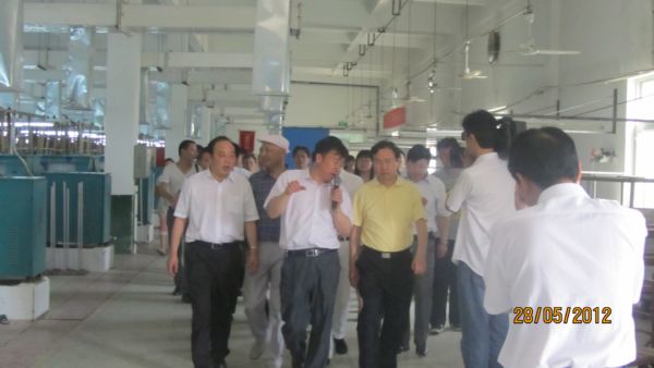 首先董事長(zhǎng)馬品德向各位領(lǐng)導(dǎo)、企業(yè)家蒞臨公司考察指導(dǎo)工作表示熱烈的歡迎,并就公司的有關(guān)情況作了簡(jiǎn)單介紹?疾靾F(tuán)一行在董事長(zhǎng)的陪同下實(shí)地考察了公司的選繭、繅絲、復(fù)整、準(zhǔn)備、劍桿等生產(chǎn)車間,饒有興致地聽取了董事長(zhǎng)對(duì)相關(guān)生產(chǎn)流程的介紹,并對(duì)公司近年來(lái)所取得的成績(jī)給予了高度的評(píng)價(jià)。