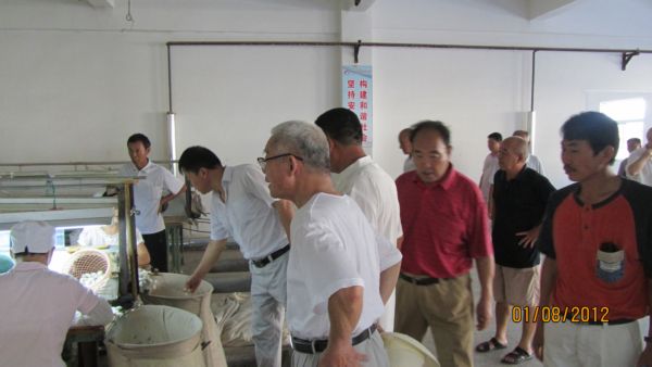 隨后,離退休復(fù)員轉(zhuǎn)業(yè)軍人老領(lǐng)導(dǎo)、老干部在董事長馬品德等領(lǐng)導(dǎo)的陪同下,頂著熱烈的陽光,參觀了選繭車間、繅絲車間、復(fù)整車間、準備車間、劍桿車間、鍋爐房等。當看到那些一絲不茍、專心致志工作的一線員工及高技術(shù)含量的新產(chǎn)品時,老領(lǐng)導(dǎo)、老干部不時的嘖嘖稱贊著,雖然熱汗涔涔但目光一直摩挲在那些熟悉的原料、成品、機器上。