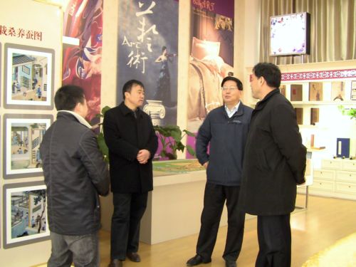 宋書記等領(lǐng)導(dǎo)來到“華詩雅蒂”產(chǎn)品展示廳,集華貴、浪漫、高雅、藝術(shù)為一身的絲綢產(chǎn)品簡約而不簡單的陳列著,吸引著領(lǐng)導(dǎo)者的視線,他們猶如欣賞藝術(shù)品一樣仔細(xì)、認(rèn)真。展廳里除了傳統(tǒng)的睡衣、絲巾、領(lǐng)帶、家飾家紡等產(chǎn)品,還有絲綢版的梅蘭竹菊、《齊白石》織錦畫等絲綢工藝品,最值得一提的是華詩雅蒂蠶絲被,憑借其卓越的品質(zhì)、考究的做工、高雅的設(shè)計到得了領(lǐng)導(dǎo)的稱贊。領(lǐng)導(dǎo)們認(rèn)真聽取了馬董事長的匯報講解,對公司以誠信創(chuàng)品牌,以品牌贏市場,走出一條傳統(tǒng)產(chǎn)業(yè)品牌化發(fā)展的成功之路表示贊賞,同時殷切希望公司穩(wěn)健發(fā)展,創(chuàng)新經(jīng)營,努力實現(xiàn)華詩雅蒂新一輪跨越發(fā)展。