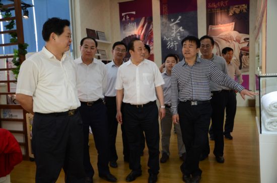 楊省長(zhǎng)不辭辛勞深入生產(chǎn)車(chē)間一線,先后來(lái)到繅絲、織綢及華詩(shī)雅蒂產(chǎn)品的生產(chǎn)現(xiàn)場(chǎng),實(shí)地了解企業(yè)的生產(chǎn)與發(fā)展情況。在視察過(guò)程中,每到一處,楊省長(zhǎng)都認(rèn)真聽(tīng)取馬董事長(zhǎng)對(duì)企業(yè)經(jīng)營(yíng)情況的匯報(bào),并不時(shí)駐足停留,詳細(xì)詢問(wèn)生產(chǎn)工藝及目前的生產(chǎn)狀態(tài)、產(chǎn)品質(zhì)量情況。在華詩(shī)雅蒂產(chǎn)品展示廳,楊省長(zhǎng)關(guān)切地詢問(wèn)著企業(yè)的利潤(rùn)與銷(xiāo)售和市場(chǎng)開(kāi)發(fā)、產(chǎn)品研發(fā)等企業(yè)發(fā)展的實(shí)質(zhì)性問(wèn)題,對(duì)企業(yè)在繭絲綢市場(chǎng)環(huán)境持續(xù)艱難的狀況中能積極應(yīng)變、自主創(chuàng)新發(fā)展表示贊許,并對(duì)企業(yè)未來(lái)的發(fā)展給予了寶貴的建議。他指出,企業(yè)要圍繞提高產(chǎn)品的科技含量,豐富產(chǎn)品線,完善產(chǎn)業(yè)鏈,增加產(chǎn)品的附加值。他強(qiáng)調(diào),絲綢是個(gè)艱難的行業(yè),要搶抓機(jī)遇、揚(yáng)長(zhǎng)避短、突出優(yōu)勢(shì),不斷淘汰落后產(chǎn)能,著力調(diào)整產(chǎn)品結(jié)構(gòu),強(qiáng)化品牌發(fā)展,加快轉(zhuǎn)型升級(jí)步伐,提升企業(yè)的綜合競(jìng)爭(zhēng)力。他希望企業(yè)要實(shí)現(xiàn)可持續(xù)發(fā)展,就必須要從研發(fā)設(shè)計(jì)到品牌營(yíng)銷(xiāo)都注重自主創(chuàng)新,勉勵(lì)企業(yè)將華詩(shī)雅蒂高端品牌做強(qiáng)做優(yōu),不斷增強(qiáng)企業(yè)核心競(jìng)爭(zhēng)力。