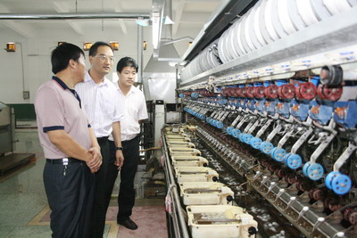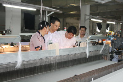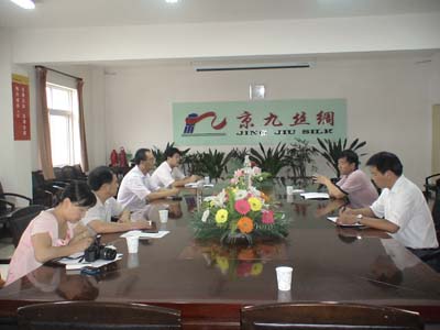 黃山區(qū)領(lǐng)導(dǎo)在馬總的陪同下,依次參觀了繅絲車間、劍桿車間等,使其詳細(xì)了解我公司各個(gè)生產(chǎn)工藝流程,考察期間,馬總詳細(xì)匯報(bào)了我公司目前的生產(chǎn)經(jīng)營情況:我公司是一家集載桑、養(yǎng)蠶、蠶繭収烘、繅絲、織綢、家飾家紡、真絲服裝生產(chǎn)、銷售為一體的綜合性繭絲綢企業(yè),在崗員工1600多名。目前,我公司已成為行業(yè)中的龍頭企業(yè),綜合規(guī)模全省第一,國內(nèi)較大。洽談會(huì)上,副區(qū)長洪斌介紹了黃山區(qū)繭絲綢產(chǎn)業(yè)發(fā)展、投資環(huán)境和優(yōu)惠政策以及黃山區(qū)委、區(qū)政府幫助蠶農(nóng)增收致富,促進(jìn)蠶桑產(chǎn)業(yè)發(fā)展的決心等方面的情況,并誠摯邀請我公司到黃山區(qū)進(jìn)行考察、投資,拓展企業(yè)發(fā)展空間,把企業(yè)的終端產(chǎn)品與黃山區(qū)豐富的旅游資源結(jié)合,與蠶桑綜合利用結(jié)合起來,帶動(dòng)黃山區(qū)蠶農(nóng)致富,蠶桑產(chǎn)業(yè)振興。