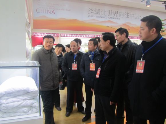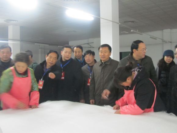 工商聯(lián)界別委員在董事長(zhǎng)馬品德的帶領(lǐng)下,深入生產(chǎn)一線,先后參觀了公司劍桿車間、絲綿車間以及華詩(shī)雅蒂產(chǎn)品展示廳。在華詩(shī)雅蒂產(chǎn)品展示廳,領(lǐng)導(dǎo)一行認(rèn)真聽(tīng)取馬董事長(zhǎng)關(guān)于絲綢的歷史文化、以及展廳里的絲綢產(chǎn)品生產(chǎn)工藝的詳細(xì)介紹。領(lǐng)導(dǎo)們對(duì)展廳里的高貴典雅、華貴飄逸、絢麗多姿的絲綢產(chǎn)品贊賞有加,對(duì)積極運(yùn)用高新技術(shù)改造傳統(tǒng)的絲綢產(chǎn)業(yè)所做成的文化品、藝術(shù)品和收藏品深表欽佩,紛紛感嘆絲綢產(chǎn)品的精美與華麗!工商聯(lián)主席王康健對(duì)京九絲綢大力推進(jìn)科技創(chuàng)新和產(chǎn)品深度開(kāi)發(fā),從傳統(tǒng)繭絲綢企業(yè)變?yōu)橛袠?biāo)準(zhǔn)、有品牌、有核心技術(shù)的企業(yè)深表贊賞!同時(shí)也希望京九絲綢能增強(qiáng)品牌宣傳推廣,進(jìn)一步推進(jìn)企業(yè)轉(zhuǎn)型升級(jí),將傳統(tǒng)產(chǎn)業(yè)上升到文化高度,提升產(chǎn)品附加值,增加產(chǎn)品的適用性和觀賞性。最后,馬董事長(zhǎng)表示,新的絲綢之路必然是文化之路,振興絲綢產(chǎn)業(yè),弘揚(yáng)絲綢文化是我們引為自豪的天職。公司將積極做強(qiáng)做大品牌華詩(shī)雅蒂,加速傳統(tǒng)產(chǎn)業(yè)的提升,同時(shí),公司正在籌建絲綢歷史文化博物館,力爭(zhēng)形成以絲綢為載體的文化產(chǎn)業(yè),使公司發(fā)展得更好。