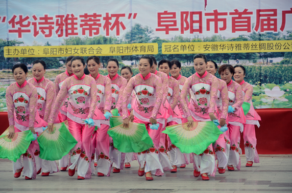 2014年9月29日由阜陽市婦聯(lián)、市體育局聯(lián)合主辦、安徽華詩雅蒂絲綢股份公司冠名協(xié)辦的“美麗家園美麗女性”“華詩雅蒂杯”阜陽市首屆廣場舞大賽(總決賽)在清河廣場隆重舉行。