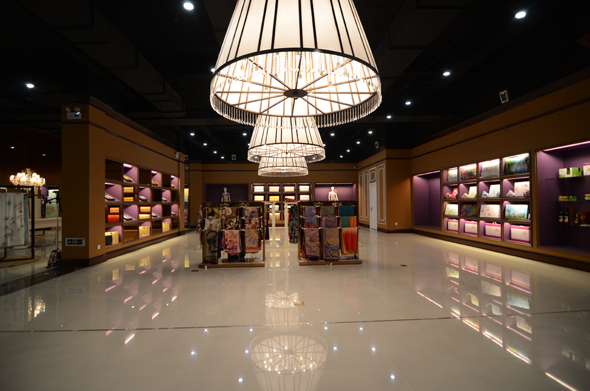 整個博物館分為室內(nèi)和室外兩部分,室外設(shè)計為桑樹主題園林及絲綢廣場,總面積為2800平方米。室內(nèi)部分設(shè)計為上下兩層,中庭調(diào)高結(jié)構(gòu)。一樓設(shè)計為絲綢博物館、婚紗攝影館、產(chǎn)品設(shè)計研發(fā)中心、產(chǎn)品檢測中心、紡織機械陳列室、閱覽室等,總面積為1990平方米;二樓設(shè)計為華詩雅蒂絲綢產(chǎn)品展示、企業(yè)文化展示、多媒體會議室、辦公區(qū)等,總面積為2720平方米。多樣化的展館、趣味性的展示方式將文化延伸到時尚、潮流、奢華等元素之上,將絲綢制品的概念從傳統(tǒng)的服裝、圍巾、領(lǐng)帶等擴展到家紡、裝飾、工藝禮品、美容、飲食等衍生品消費領(lǐng)域,讓參觀者充分感受中國絲綢博大精深的文化魅力和風(fēng)采。該館歷時三年的籌備與投建,是集團公司發(fā)展的里程碑,標(biāo)志著企業(yè)品牌發(fā)展進入一個全新的歷史時期,也必將引領(lǐng)絲綢行業(yè)催生新的商業(yè)模式。