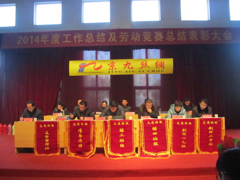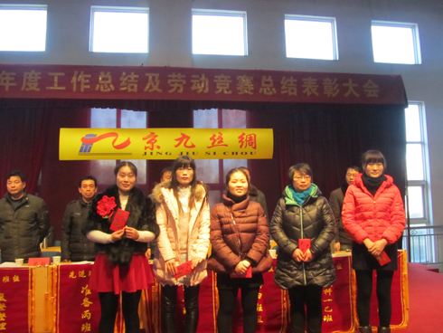 會(huì)上,公司對(duì)榮獲2014年度先進(jìn)集體和先進(jìn)個(gè)人及榮獲2014年度勞動(dòng)競賽的操作能手、進(jìn)步員工、星級(jí)員工進(jìn)行了表彰獎(jiǎng)勵(lì),并由公司領(lǐng)導(dǎo)為他們頒發(fā)了榮譽(yù)證書和獎(jiǎng)金及蠶絲被。