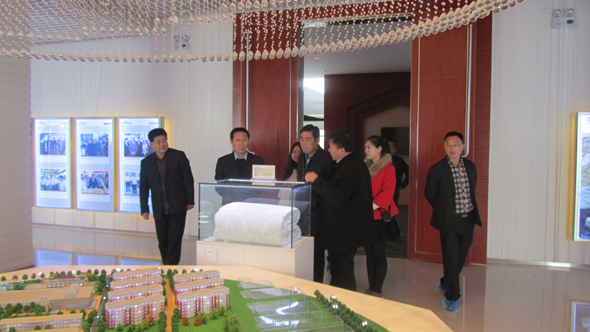 而后錢局長(zhǎng)一行在馬董事長(zhǎng)的親自陪同下饒有興致地參觀了華夏絲綢博物館,詳細(xì)了解了博物館的籌備與投建、設(shè)計(jì)理念、各廳的布局?jǐn)[設(shè)等情況。馬董介紹,我國(guó)是繭絲綢的發(fā)源地,絲綢承載著中國(guó)悠久的文化歷史,是值得中華民族引以為傲的“瑰寶”。在2015年的春節(jié)晚會(huì)上,與絲綢有關(guān)的節(jié)目有三個(gè),這讓絲綢之路的概念得到了更廣泛的傳播。為積極響應(yīng)國(guó)家的“一帶一路”戰(zhàn)略,更好地弘揚(yáng)與傳播絲綢文化,讓更多的人近距離了解絲綢科技的最新發(fā)展,華夏絲綢博物館應(yīng)運(yùn)而生。館內(nèi)收集、整理、復(fù)制了遠(yuǎn)古到近現(xiàn)代許多珍貴的栽桑養(yǎng)蠶、絲綢織造的器具、圖片、實(shí)物、場(chǎng)景,較全面而真實(shí)地反映了中國(guó)絲綢文化發(fā)展的歷程和精華。在二樓華詩(shī)雅蒂絲綢產(chǎn)品展廳,各種輕薄飄逸、色澤亮麗的真絲原料、面料,款式新穎的絲綢服飾,色彩綺麗的真絲絲巾、工藝精湛的絲綢文化產(chǎn)品、風(fēng)格各異的家紡產(chǎn)品,形成了一條靚麗的絲綢產(chǎn)品風(fēng)景線吸引著大家的眼球。錢局長(zhǎng)一行紛紛駐足觀看、詢問(wèn),連連稱贊華詩(shī)雅蒂產(chǎn)品的高品質(zhì)、高品位。