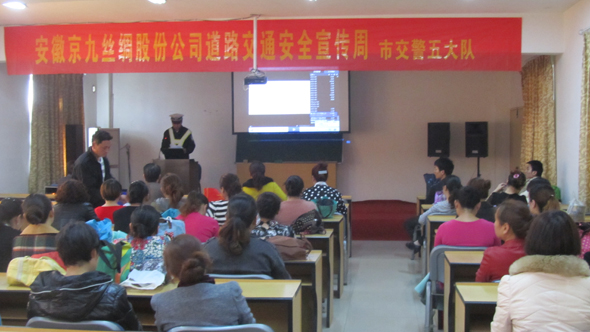 3月30日下午四點,公司邀請市交警五大隊常隊長、劉警官等相關人員來公司四樓會議室,為員工講解道路交通安全知識,繅絲一、二車間近百名員工準時參加并認真聆聽了此次視頻講座。