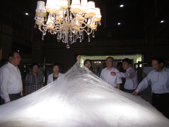 作為省級科普教育示范基地的華夏絲綢博物館,其豐富多彩的館藏,彰顯出的科學(xué)性、趣味性等功能深深吸引了中小學(xué)師生的濃厚興趣,自今年元旦開館以來就接待了近萬人次,成為省、市精神文明和愛國主義教育基地。此基地為提高中小學(xué)生對絲綢文化的認(rèn)知與中華歷史的傳承提供了良好的有效平臺,每當(dāng)周末,博物館前門庭若市,前來參觀的師生絡(luò)繹不絕。在馬主席一行參觀的同時就有市第21中學(xué)的師生200多人正在參觀,一時整個博物館內(nèi)人潮涌動,熱鬧非常。