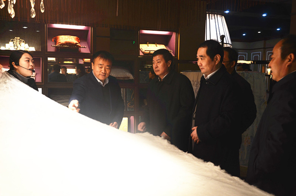 姚書記一行對企業(yè)在艱難的困境中取得的成績深表欣慰,對華夏絲綢博物館內(nèi)豐富、優(yōu)質(zhì)的藏品及簡約雅致的華詩雅蒂產(chǎn)品給予了充分肯定和高度評價。他希望公司繼續(xù)憑借博大精深的絲綢文化和京九絲綢人精益求精的工匠精神,加大自主品牌的研發(fā)與創(chuàng)新,生產(chǎn)出更多富有獨創(chuàng)性和文化品牌的絲綢產(chǎn)品,為續(xù)寫中國絲綢產(chǎn)業(yè)的輝煌作出更大更多的貢獻(xiàn)。
