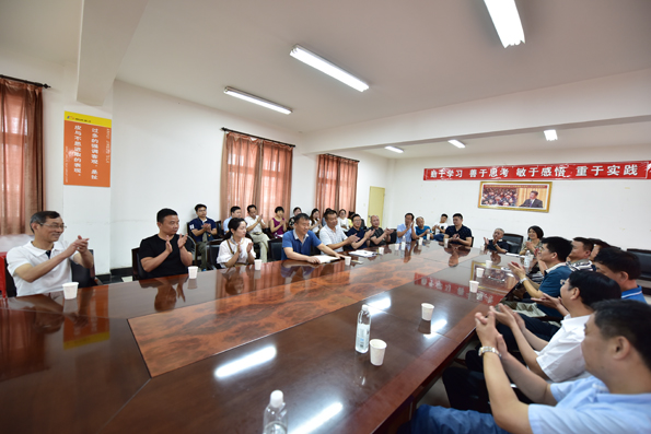 2017年7月5日上午,阜陽廣播電視臺第四、五支部40多名黨員代表在劉保剛臺長的帶領(lǐng)下來到安徽京九絲綢股份公司,進行基層黨建工作交流和討論,公司董事長、黨委書記馬品德同志熱情接待了電視臺一行的到來,公司全體黨委委員參加了交流討論。