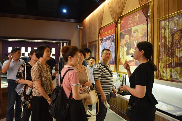 討論會結(jié)束后,領(lǐng)導(dǎo)一行來到華詩雅蒂▪華夏絲綢博物館參觀指導(dǎo),各位領(lǐng)導(dǎo)在仔細聆聽絲綢文化、絲綢歷史的介紹,了解現(xiàn)代絲綢產(chǎn)品工藝,公司概況后,就行業(yè)現(xiàn)狀進行深入溝通討論,并對華詩雅蒂的理念、現(xiàn)有成就以及將來的發(fā)展等給予了高度評價和肯定。