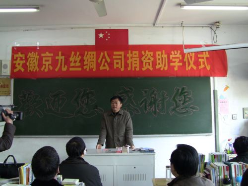 安徽京九絲綢股份公司捐資助學儀式在同學們經久不息的掌聲中圓滿結束!